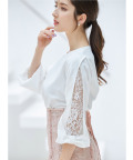 リボンモチーフ付き七分袖レース切り替えブラウス
