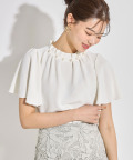 後ろリボン付きネックパールフレアスリーブブラウス