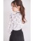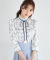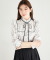 パール釦リボン×フリル付き蝶々トワルドジュイプリントブラウス