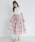 透け感のあるシアーなメッシュ生地に グログランテープで立体的なリボンをあしらいました。 トレンドライクな愛らしさで洒落感たっぷり♪ タック入りのふんわりフレアシルエットで 軽やかに広がり、涼し気な印象で着映えてくれます。 いつものトップスに合わせるだけで即旬顔に◎ |