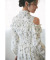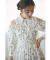 フリル付きのオープンショルダーデザインで