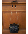 リボンショルダー付きクローバーキルティング×裏地チェリー柄バニティバッグ
