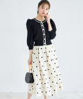 ドット・ハートフロッキープリントタックフレアスカート