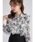 ラッフルフリル付きパール釦トワルドジュイプリントブラウス