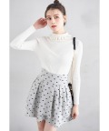 フロッキー素材のプチリボン柄が可愛い トレンドライクな表情を演出してくれる1枚。 裏地がパンツ仕様になっているスカパンなので 安心して履けるのが嬉しいポイント◎ 2枚重ねのフレア台形シルエットと 愛らしいミニ丈だからブーツとも相性抜群! モノトーンだから合わせやすい優秀アイテムです♪ |