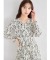 パール付きフラワープリントシャーリングギャザープリーツワンピース