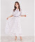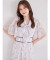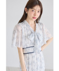 ボウタイリボン付きフレアスリーブウエストパイピングフラワープリントワンピース