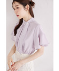 パール付きボウタイフレアスリーブブラウス