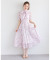 2WAYボウタイリボン付きウエストシャーリングシャイニーフラワープリントラッフルフリルワンピース
