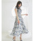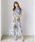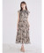 フリル付きフラワープリントシャツプリーツワンピース