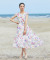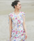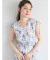 肩ドロストリボン付きフラワープリントウエストシャーリングワンピース