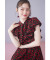 ボウタイリボン付きラッフルフリルチェリープリントウエストシャーリングワンピース