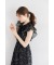 ボウタイリボン付きシアーリボンプリントワンピース