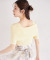 ビジューリボンブローチ付きオフショルリブニットプルオーバー