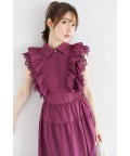 フラワーレース×フリル付きティアードシャツワンピース