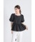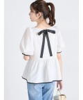 後ろグログランリボン付き配色パイピングペプラムブラウス
