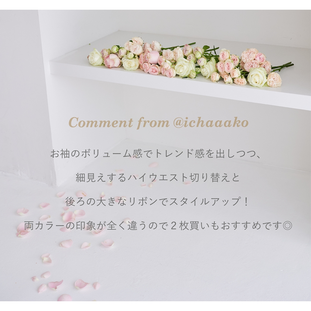 インフルエンサー@ichaaakoさんとのコラボアイテム。 1枚で旬のスタイルが完成する上品ワンピースです♪ デコルテを美しく魅せるスクエアネックを採用。 ふんわりバルーンスリーブで二の腕をカバーしつつ、 トレンドライクな洒落感をプラス。 ウエストのBACKにはビックリボンをあしらい、 後ろ姿まで可愛く仕上げました。 気負いせずリラクシーに着られるのに着映え感バツグン! 愛らしい花柄と清楚な無地でご用意しました◎ |