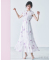ウエストリボン付きフリル&パール装飾フラワープリントワンピース