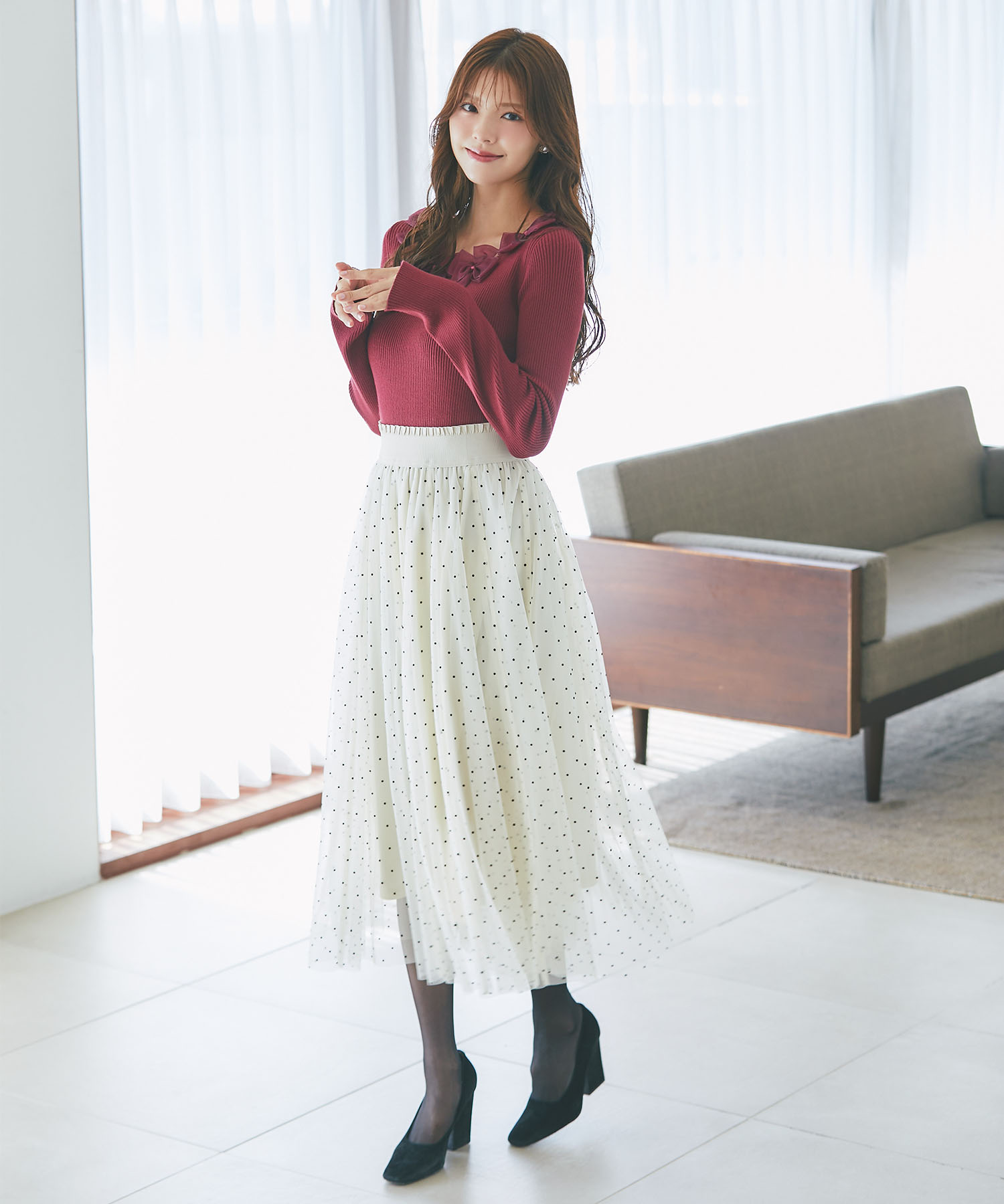 シンプルな甘さが光るニットプルオーバー。 ネックラインにシアーリボンをあしらい、 ガーリーな愛らしさを演出しました。 ネックレス要らずで華やぎます◎ コンパクトなリブ生地だから どんなボトムスともバランス良く着られ、 着回しやすいのが嬉しいポイント♪ 全体をワントーンで仕上げているので 柄物アイテムとも合わせやすい1枚です。 |