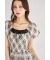 レース&リボン装飾チェック柄ウエストシャーリングワンピース