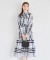 ビックボウタイリボン付きチェック柄シャーリングワンピース