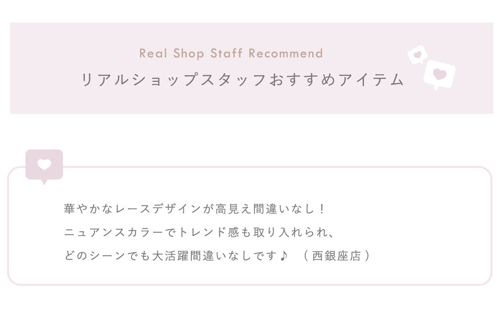 いつでもどこでも好感度抜群の高見えスカート。 ライン刺繍入りのレース生地で気品たっぷり! ONもOFFも使える上品な佇まいで着回しやすく、 ワードローブにあると助かる万能な1枚です。 裾スリット入りのタイトシルエットで スタイルUP見えしつつスマートな印象に。 シンプルなトップスと合わせるだけで着映えます♪ |