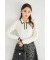 さり気なく暖かみのある表情を醸す ミニケーブル編みのニットプルオーバー。 襟・前立て・袖口はスカラップカットで仕上げ、 クラシカルな洒落感の配色ラインを入れました♪ 小さなビジューを用いたフラワー釦が ネックレス要らずの華やかなアクセントに◎ 清楚なきちんと感のある愛らしさの1着です。 |