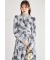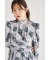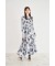 飾り釦付きウエストタックローズプリントティアードワンピース