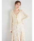 リボン付きフリルニットカーディガン×リボン付きフラワープリントキャミワンピースセット