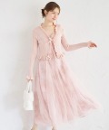 リボン付きフリルニットカーディガン×フラワーチュールプリントキャミワンピースセット