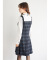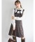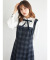 ベロアリボン付きフロッキーハート×チェック柄切り替えミニワンピース