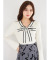 ビジュー飾り釦付きボウタイリボン配色ニットプルオーバー