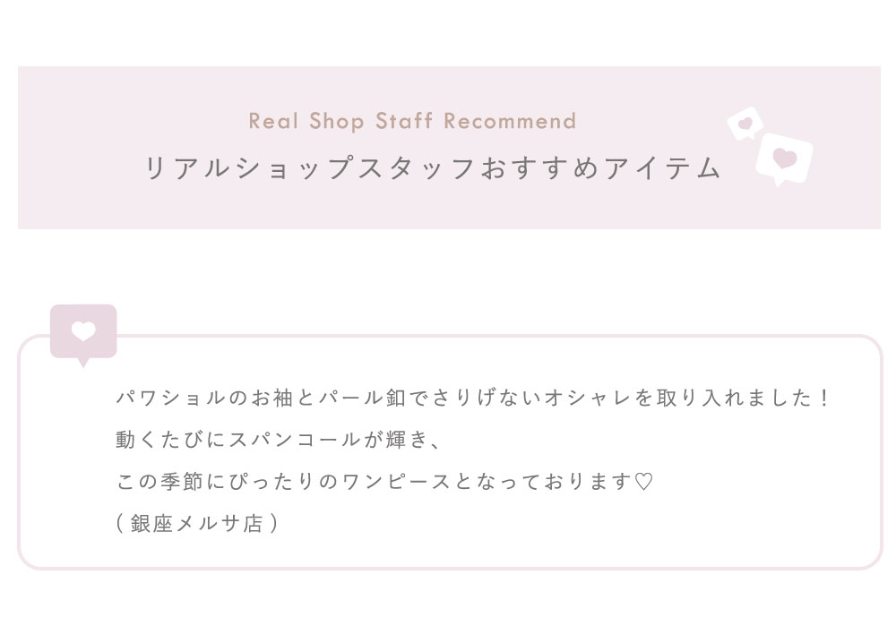 コーデ要らずで着映えるドッキングワンピース。 トップス部分は、リブカットソーのシャツデザインで 前立てには上品なパール釦を採用しました。 さらにキャザーショルダーで高感度な洒落感をプラス♪ スカート部分は、コルセット風に仕上げたスカラップカットの ハイウエストデザインで足長効果バツグン! スパンコール付きフリル×フロッキードットの 軽やかなチュール生地で唯一無二の華やかさに◎ 360度どこから見ても着映える、主役アイテムです。 |