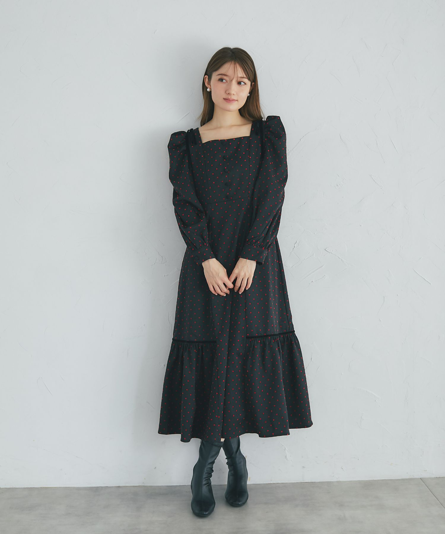 フレンチシックな洒落感を演出するワンピース。 フロッキー素材のハートドット柄生地を使用し、 旬の洒落感があるクラシカルな甘さに。 肩のリボン、フロントの飾り釦、裾の切替ラインには ベロア生地を使用し、シーズンライクな印象に♪ パワーショルダーでトレンド感、 裾の両サイド切替でふんわり広がる着映え感をON! 胸下切り替えディティールで足長効果があり さり気なくスタイルUP見えしつつ、 瞬時に今っぽい可愛さもGETできる1着です。 【お取り扱い上のご注意(フロッキー加工製品)】 ・この製品はフロッキー加工(生地表面に毛羽を接着させた加工)を施しています。 ・強く摩擦すると表面の毛羽が付着することがあります。連続着用はさけ、できるだけ同色のものと組み合わせて着用するようにして下さい。 ・洗濯の場合は裏返してネットに入れて下さい。 ・アイロンをかける際は当て布をし、低温で軽く押さえる程度にして下さい。またはスチームアイロンを軽く浮かせてかけて下さい。 ・素材の性質上、年月の経過と共に樹脂が劣化しパイルが脱落します。 |