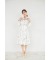 配色ライン入りボウタイリボン付きフラワープリントワンピース