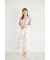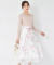 ウエストリボン付きラメシアーフラワープリントフレアスカート