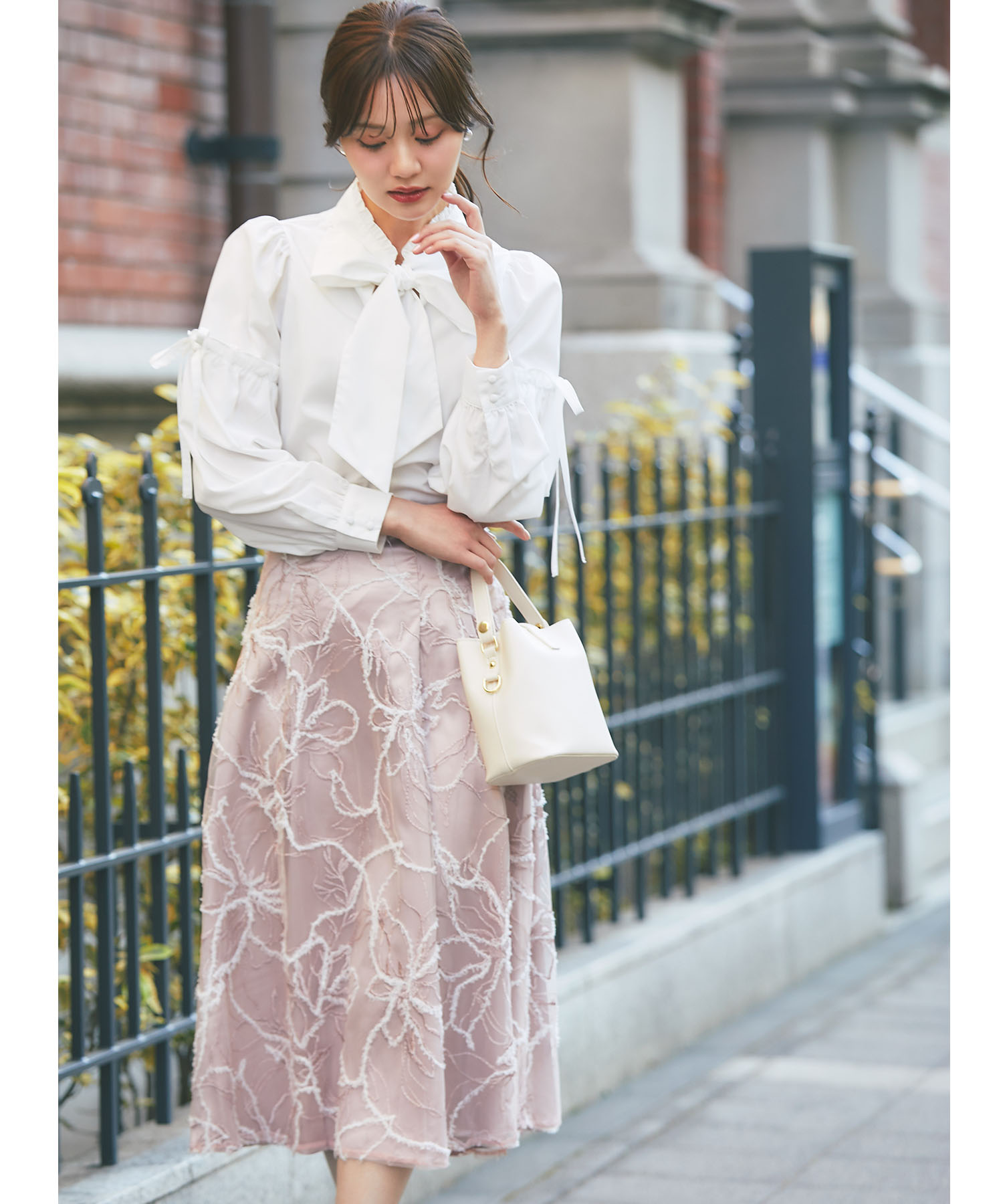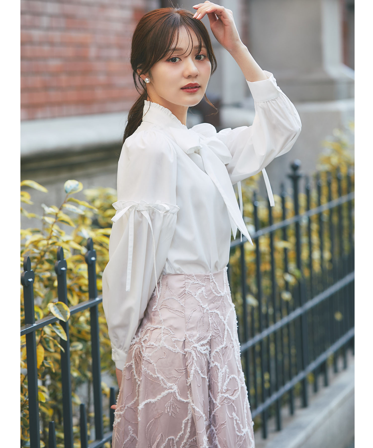 お顔周りを華やかに彩るクラシカルな甘さのブラウス。