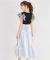 バックレースアップ裾レース装飾リボンプリントツイードライクフレアスカート