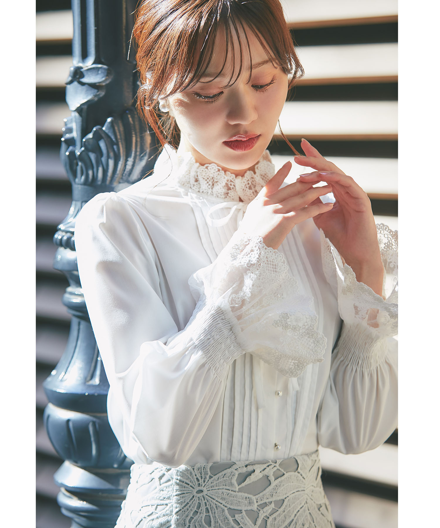 繊細なレースを贅沢にあしらったクラス感漂うブラウス。