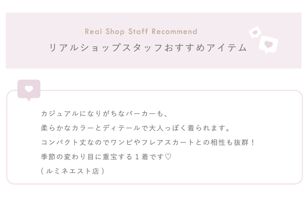 ラフなのにエレガントな印象に格上げしてくれるパーカー。 ボンディング素材ならではのハリ感と立体的なシルエットで きれいめなスタイリングをキープ♪ パールビジューをあしらったグログランリボンを施し、 tocco closetらしい甘さをプラス。 ファスナーにもパールのチャームをあしらい、 フェミニンで華やかなディテールに仕上げました◎ 花柄ワンピースからデニムパンツまで相性抜群の1着。 |