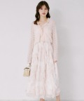 フリルカーディガン×水彩フラワーラッフルワンピースセット