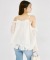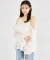 フラワー×ビジュー×スプリングフェザーオフショルダーシアーブラウス