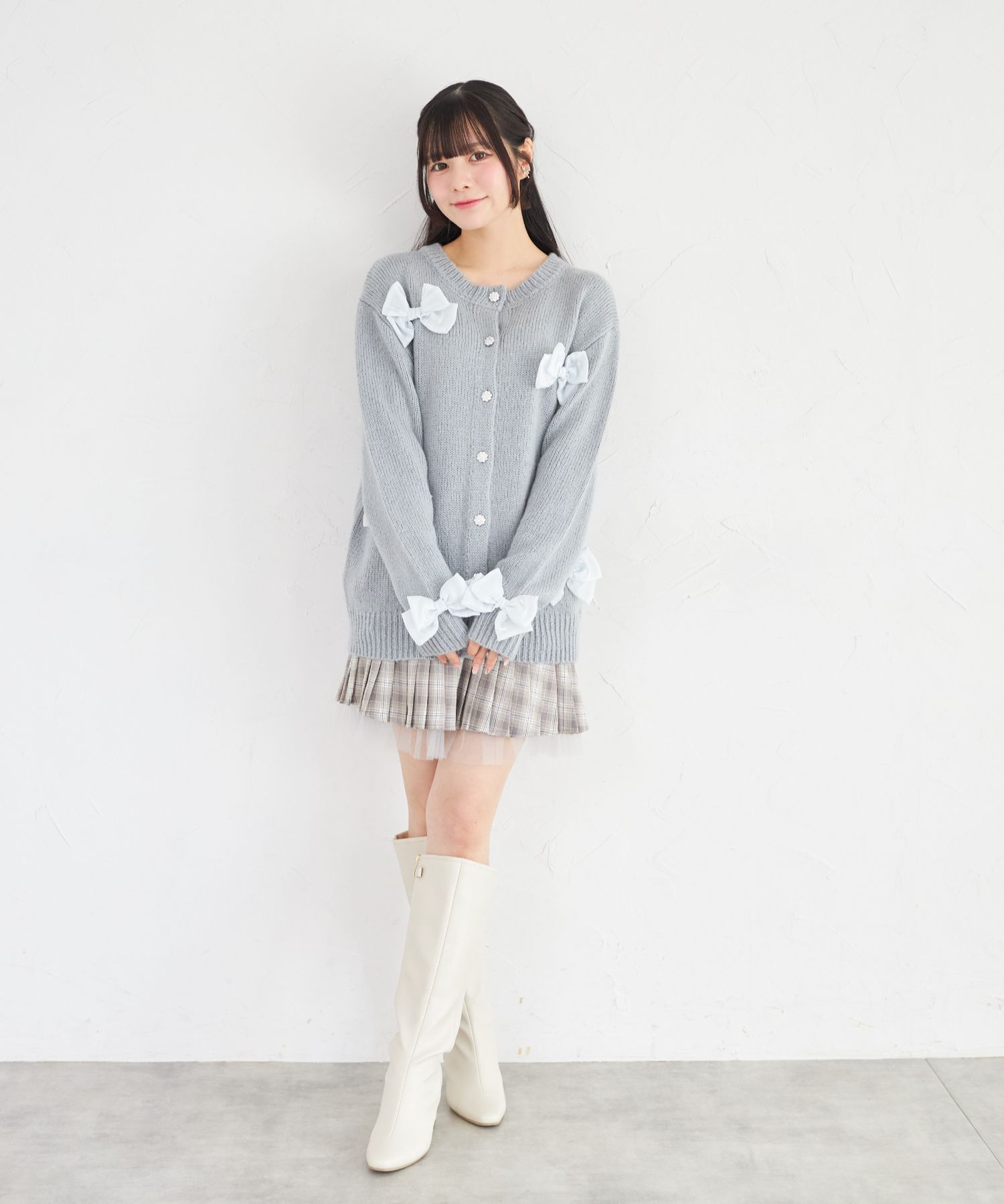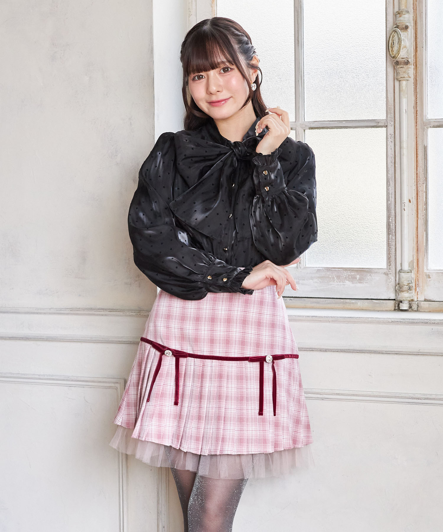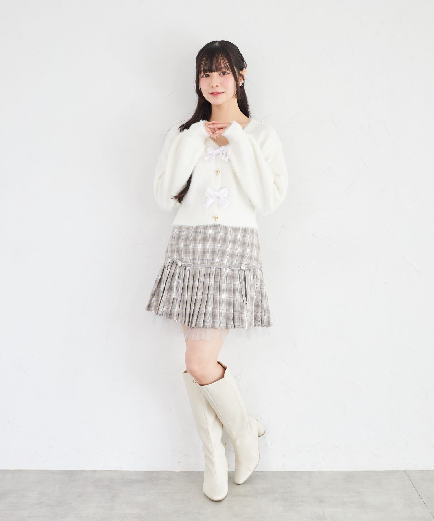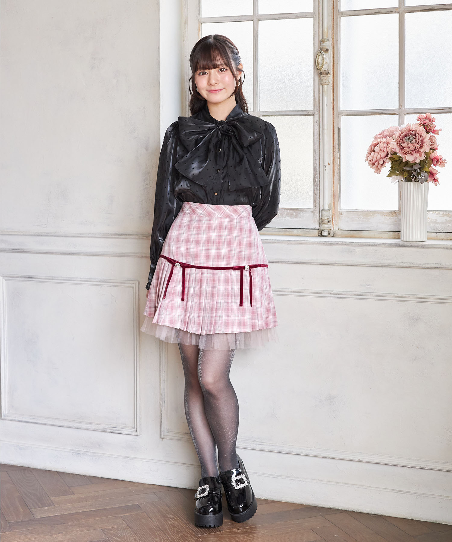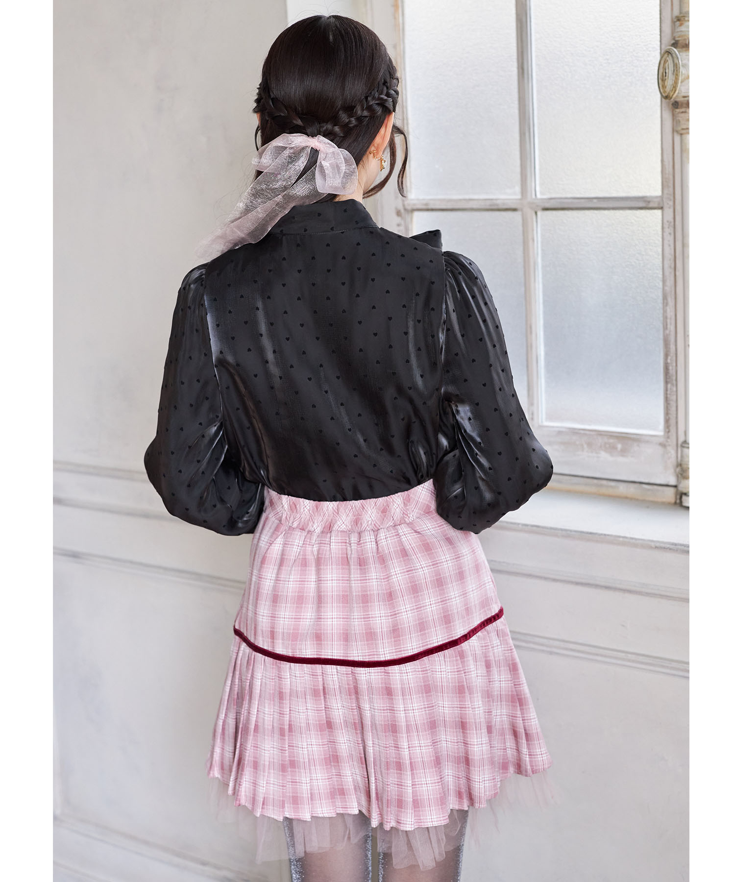 プリーツ加工で切り替えたシーズンライクなチェック柄スカート。 台形シルエット+ミニ丈で今っぽい洒落感をGET♪ ビジューを用いたベロアリボンの装飾が 高見えする上品な愛らしさのアクセントに。 裾から覗くチュールフリルがさらに可愛いポイント◎ シンプルなトップスと合わせるだけで着映える1着です。 インナーがパンツ仕様なのが嬉しいポイント! |