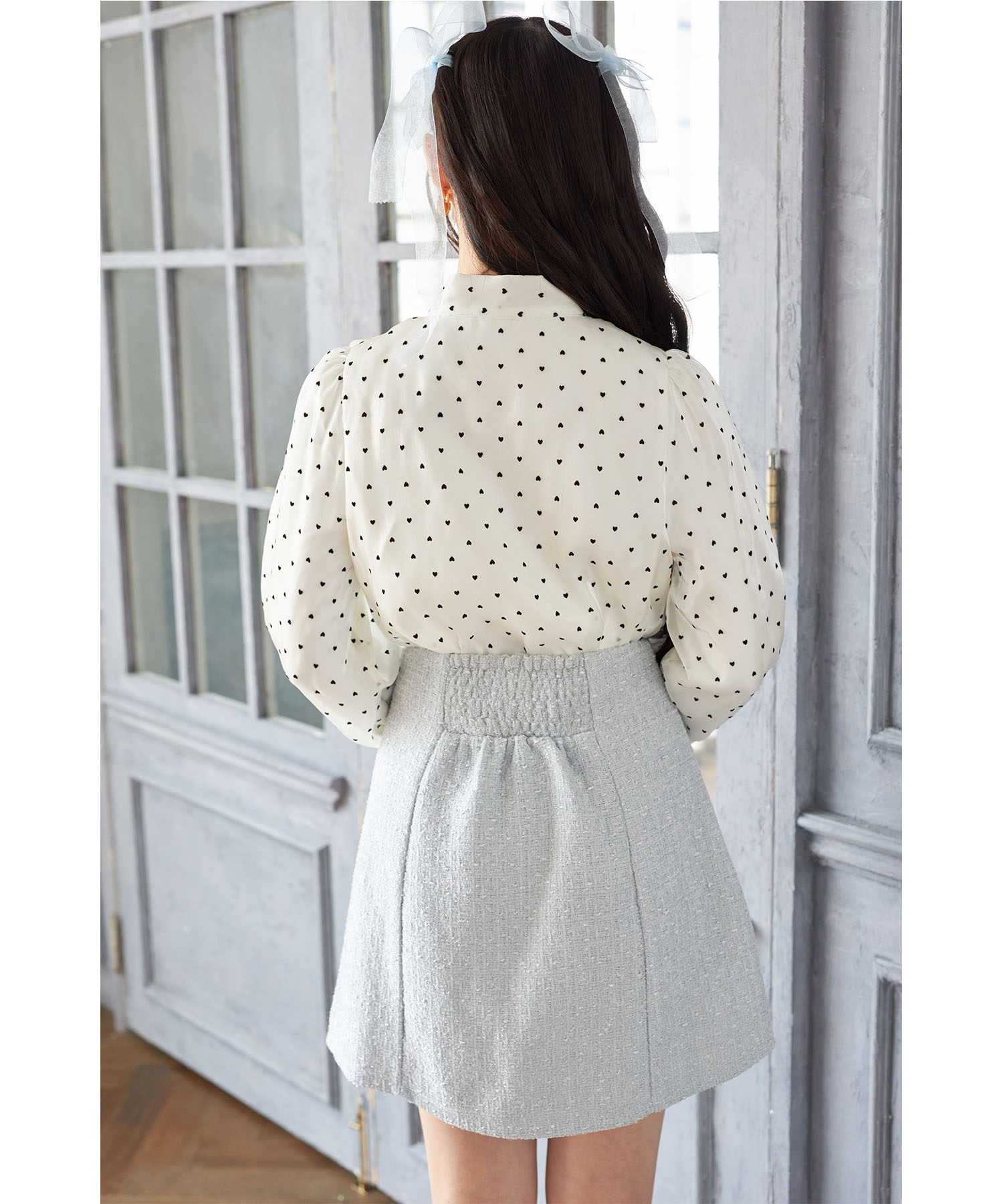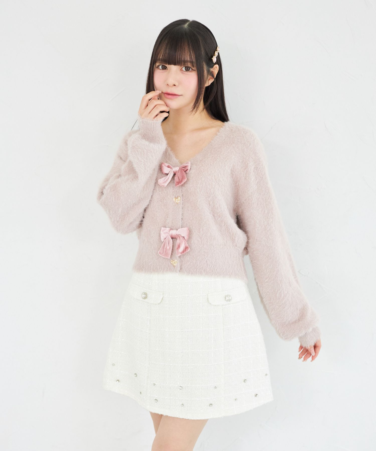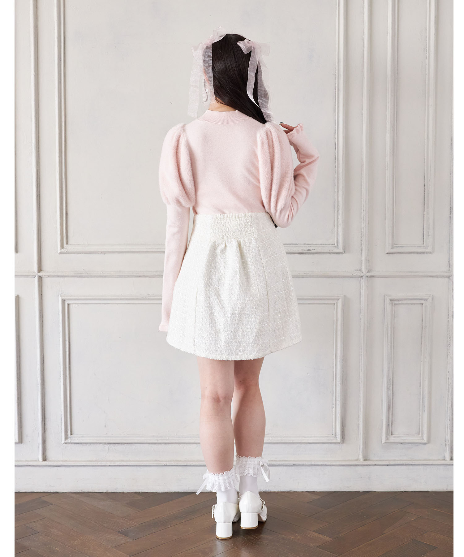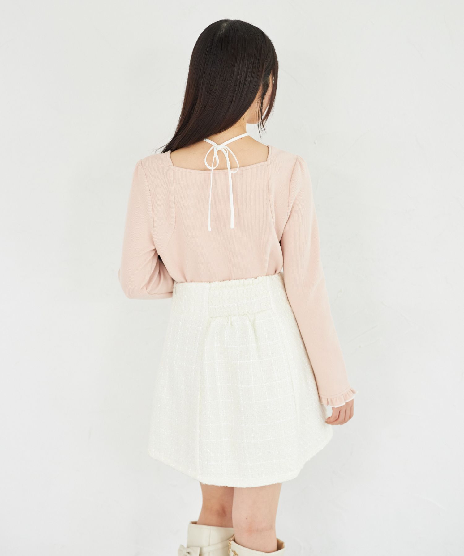 ほんのり煌めくラメ入りツイードスカート。 台形シルエット+ミニ丈で今っぽい洒落感をGET♪ フェイクポケットと裾部分にクリアビジューを施し、 高見えする上品な愛らしさを添えました◎ いつものコーデに取り入れるだけで シーズンライクなスタイルに決まります。 インナーがパンツ仕様なのが嬉しいポイント! |