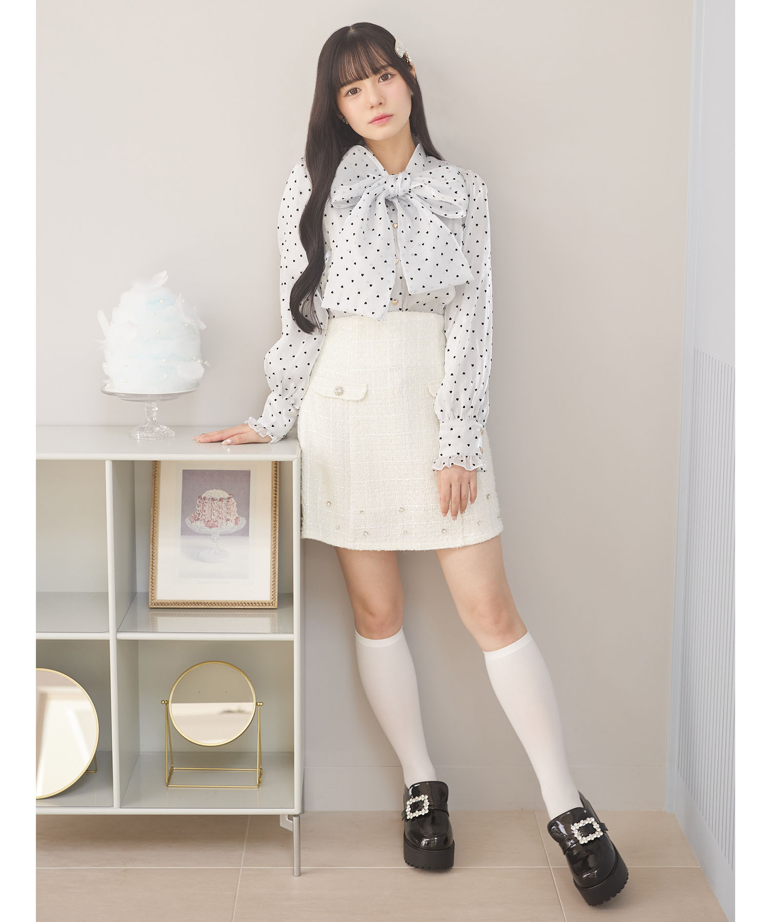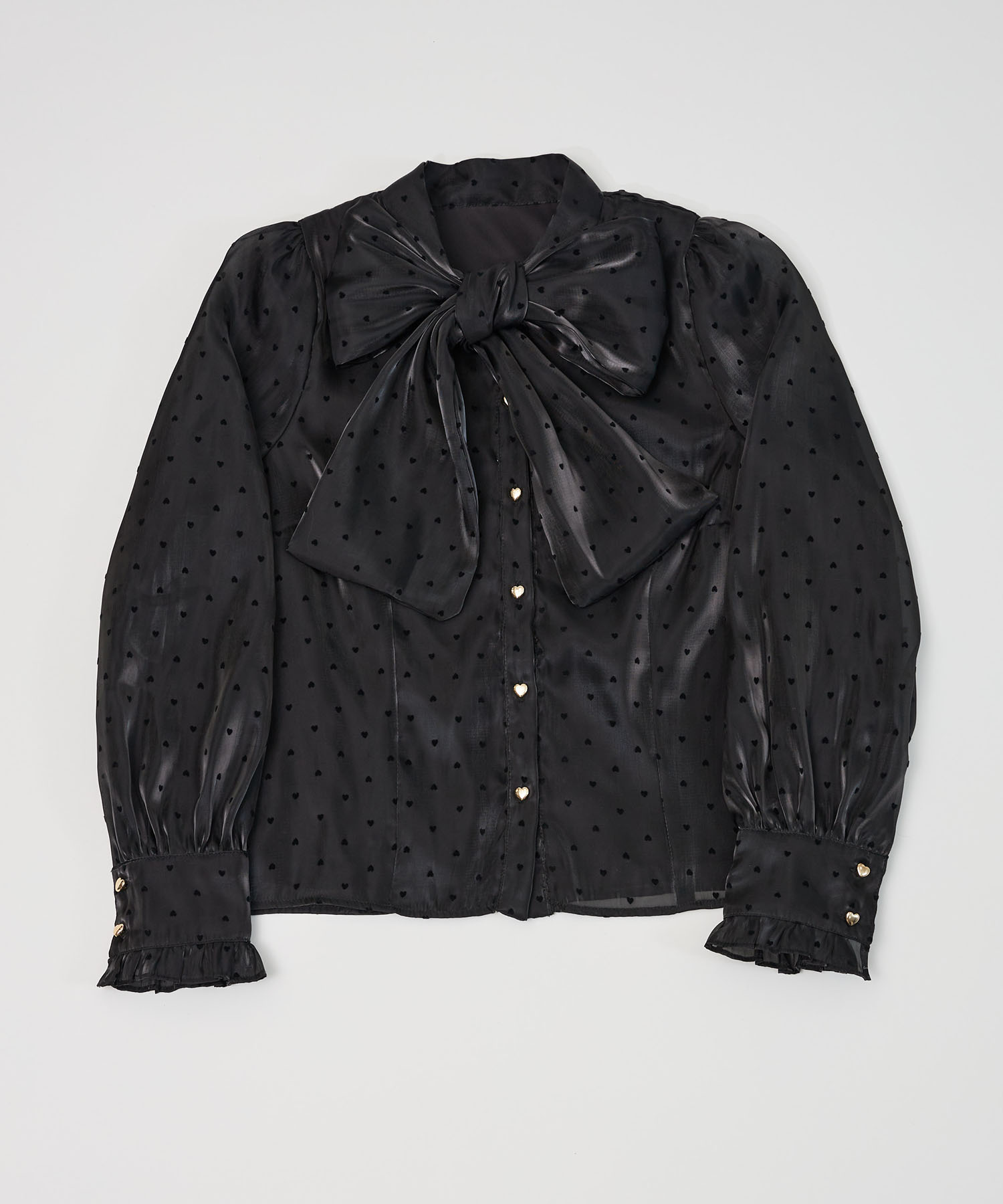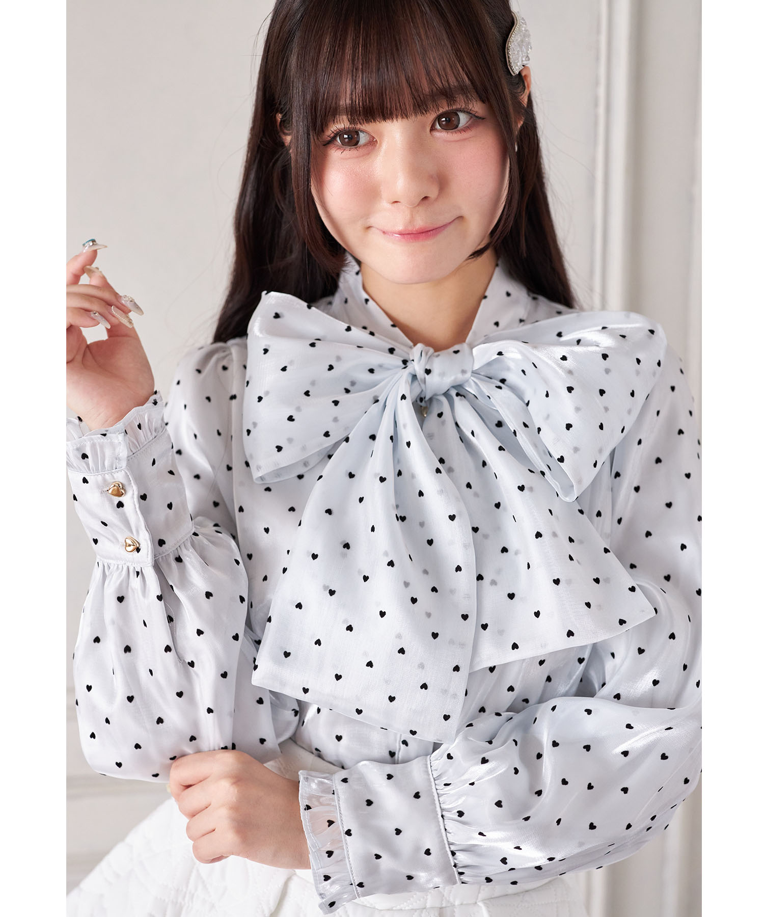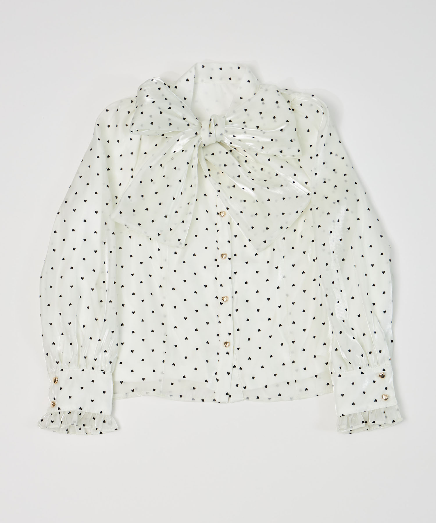 フロッキー素材のハート柄を散りばめた 愛らしさ満点の上品ブラウス。 前立てと袖口にはハート釦をあしらい、 さらにガーリーな甘さをプラスしました。 艶感があるテキスタイルに ボウタイリボンデザインだから きちんと感のある印象に導きます◎ シーズンライクな旬顔になれる1枚。 〈フロッキー加工お取り扱い上のご注意〉 この製品はフロッキー加工(生地表面に羽毛を接着させた加工)を施しています。 強く摩擦すると表面の羽毛の脱落や表面の羽毛が付着することがあります。 予めご了承くださいませ。 |