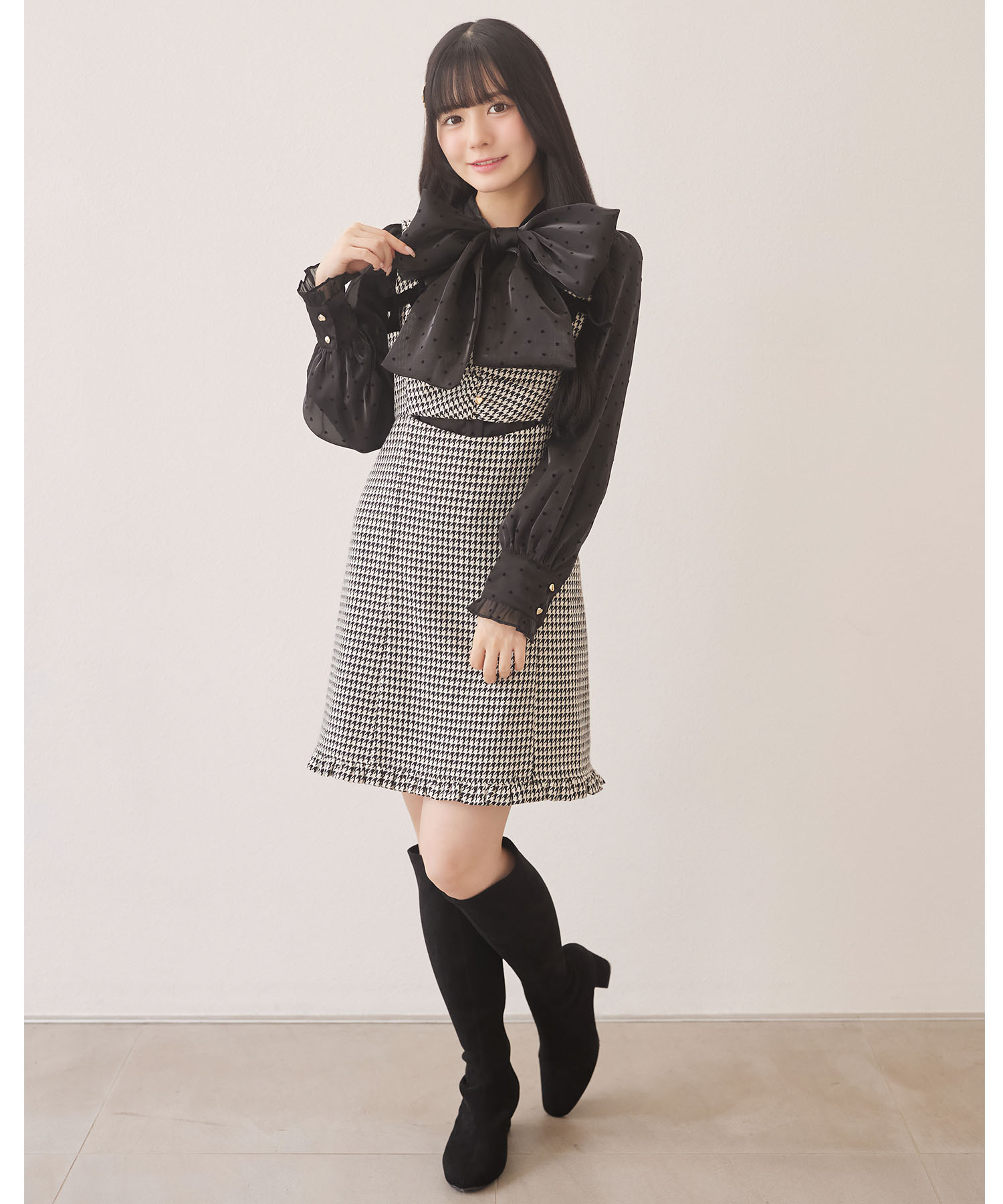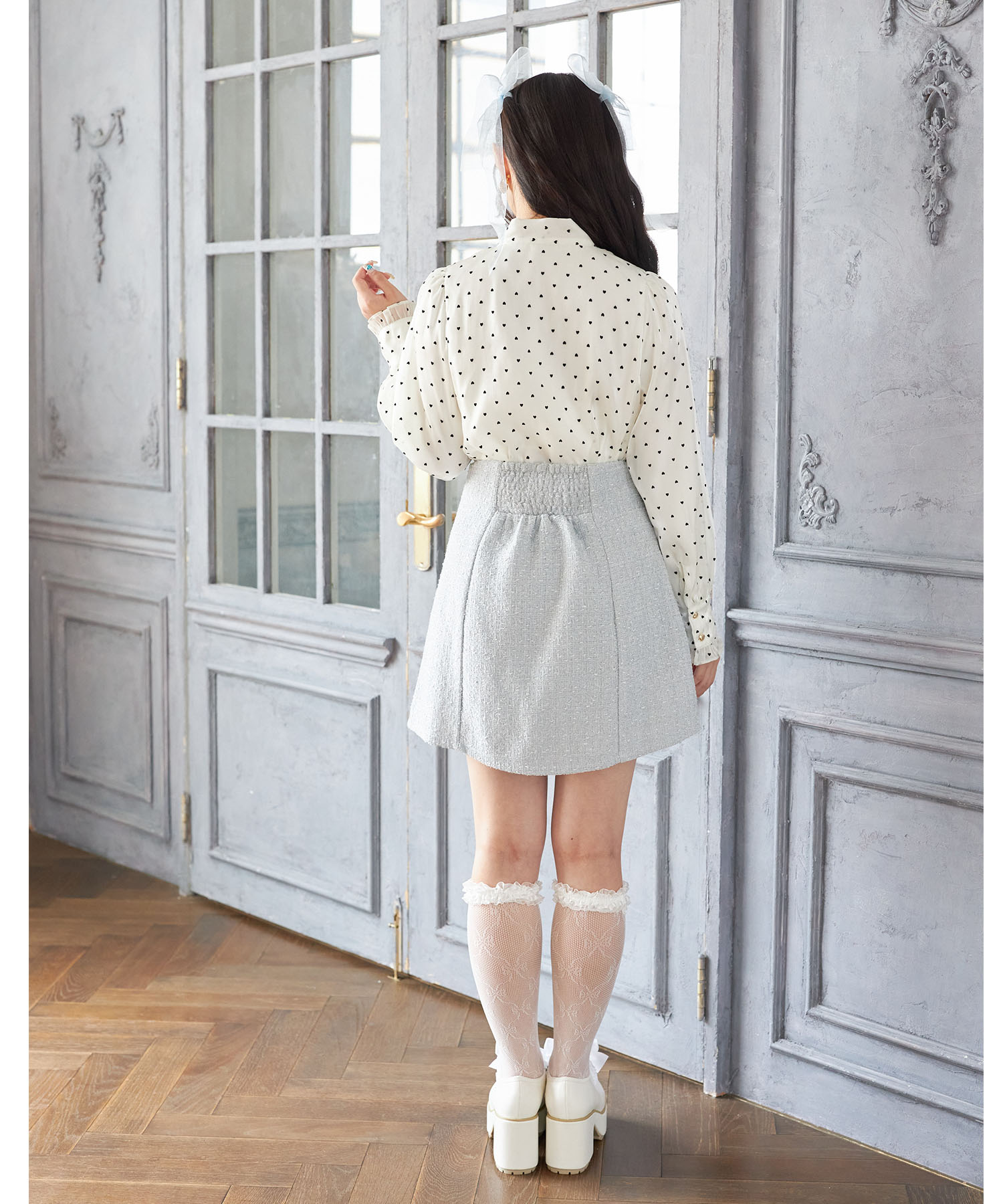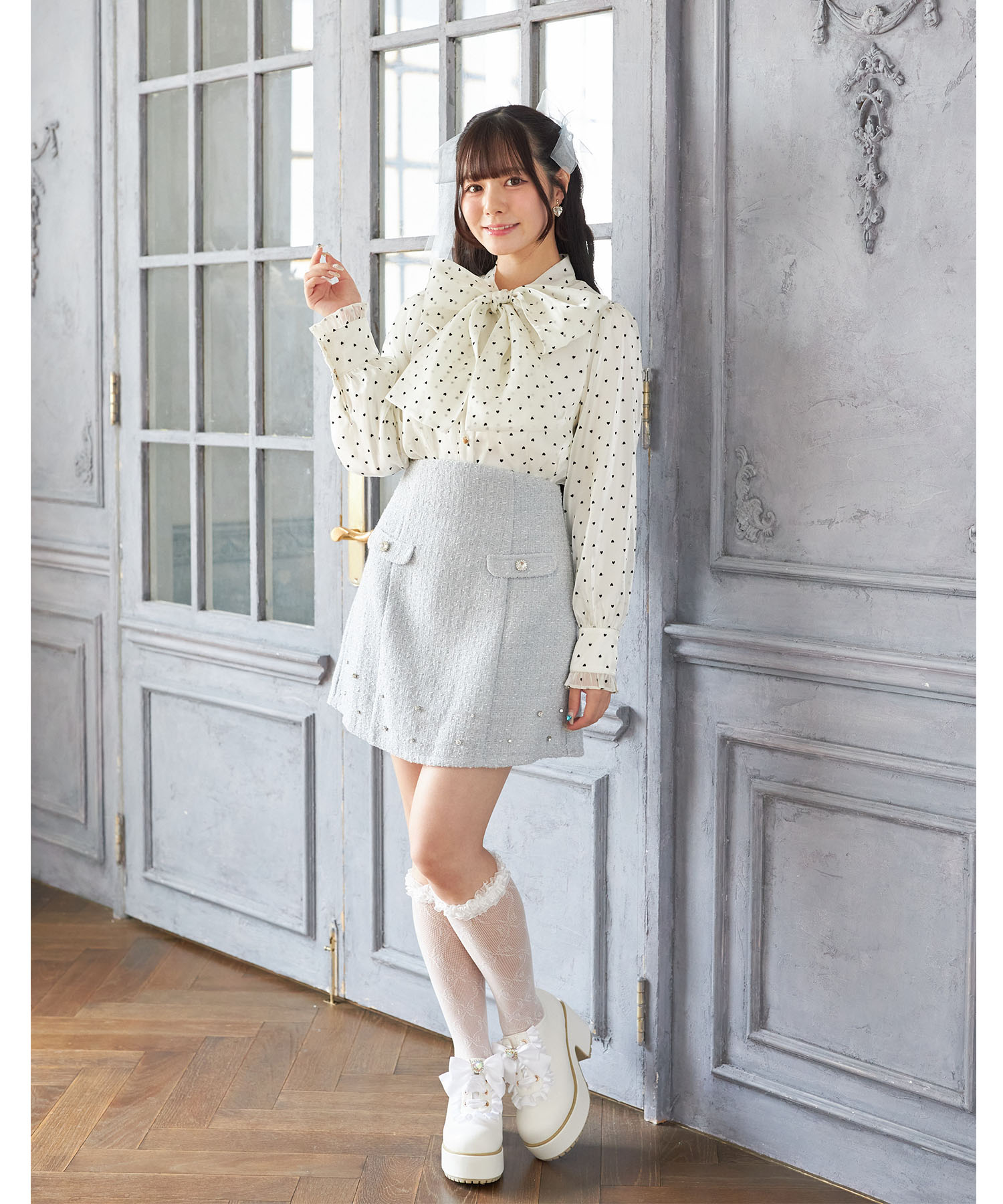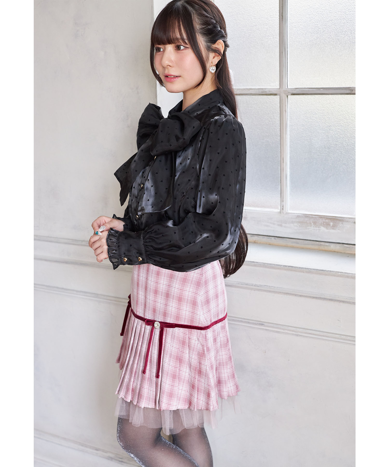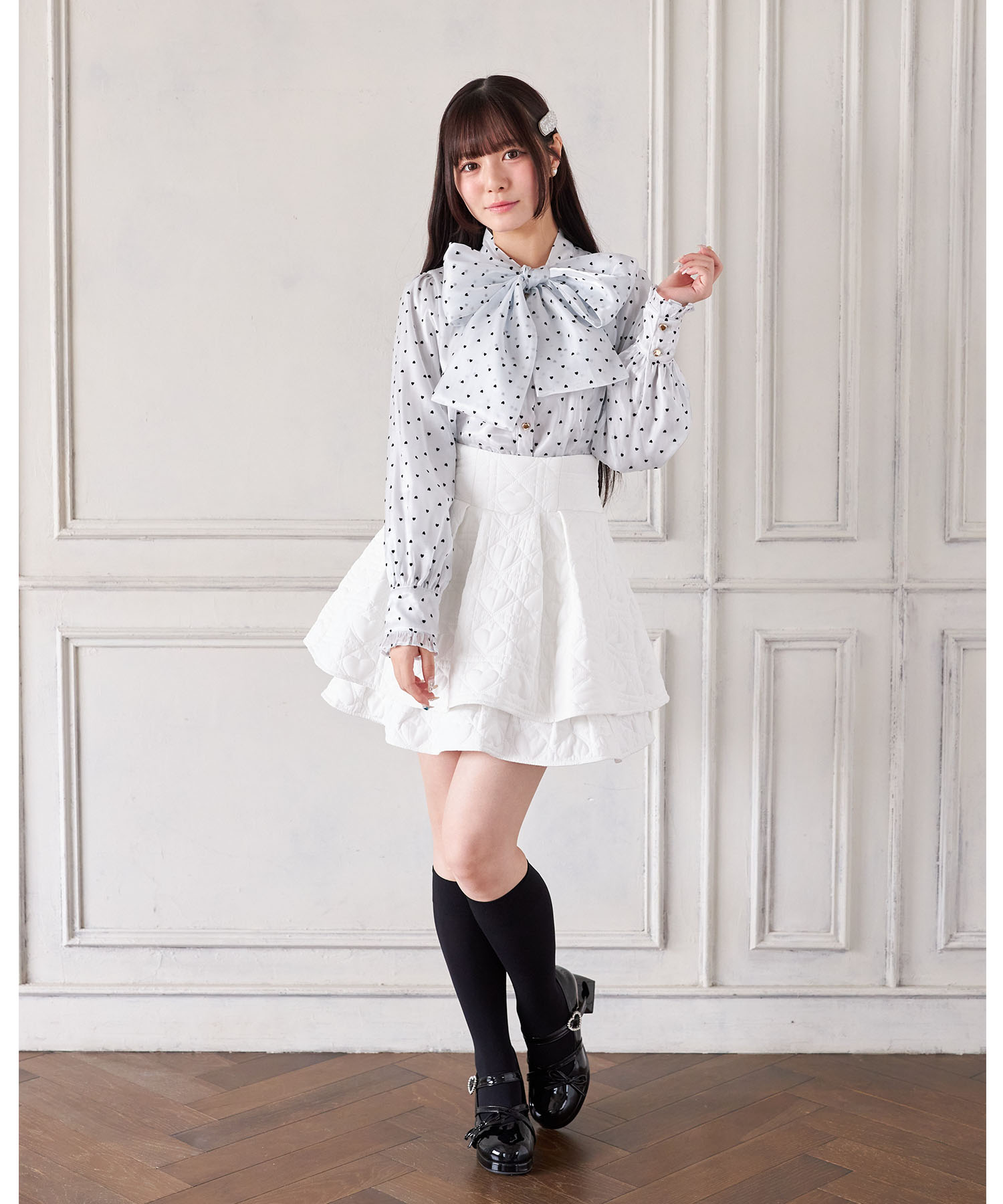 フロッキー素材のハート柄を散りばめた 愛らしさ満点の上品ブラウス。 前立てと袖口にはハート釦をあしらい、 さらにガーリーな甘さをプラスしました。 艶感があるテキスタイルに ボウタイリボンデザインだから きちんと感のある印象に導きます◎ シーズンライクな旬顔になれる1枚。 〈フロッキー加工お取り扱い上のご注意〉 この製品はフロッキー加工(生地表面に羽毛を接着させた加工)を施しています。 強く摩擦すると表面の羽毛の脱落や表面の羽毛が付着することがあります。 予めご了承くださいませ。 |