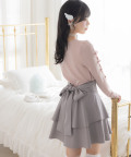 ウエスト上部にプチフリルを施し、甘いアクセントに。