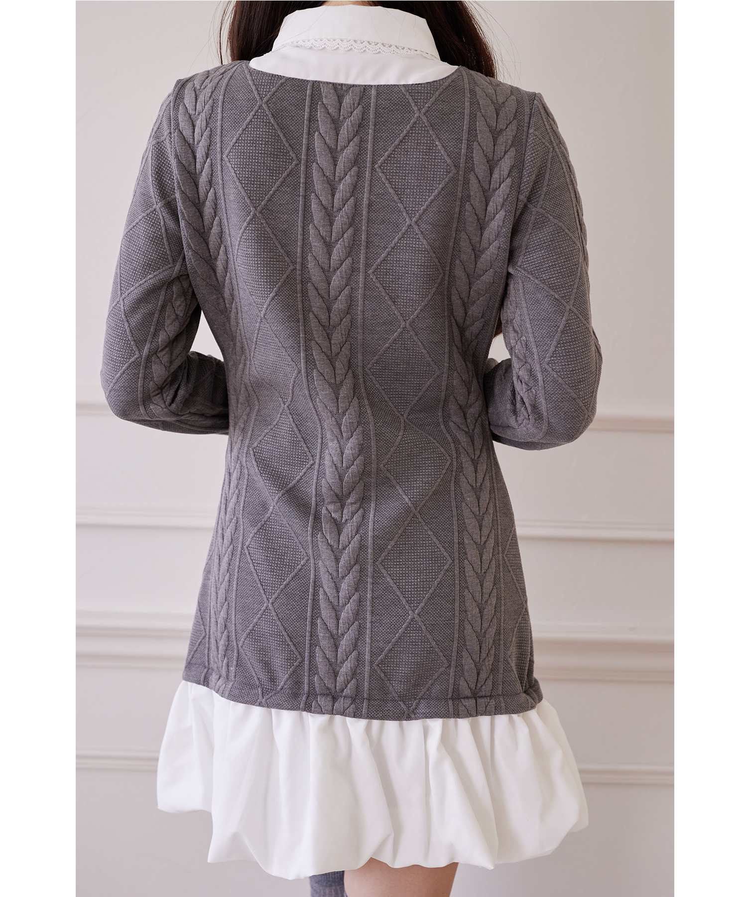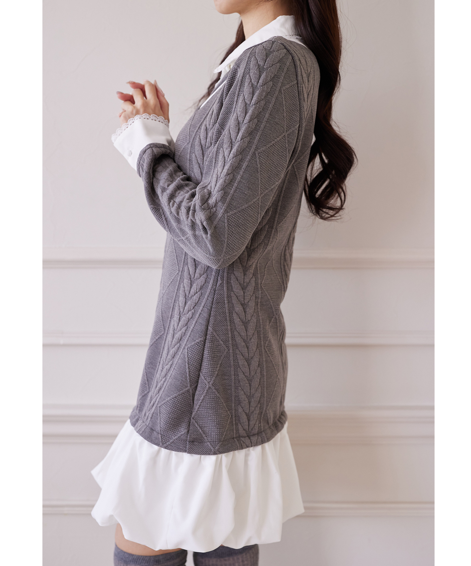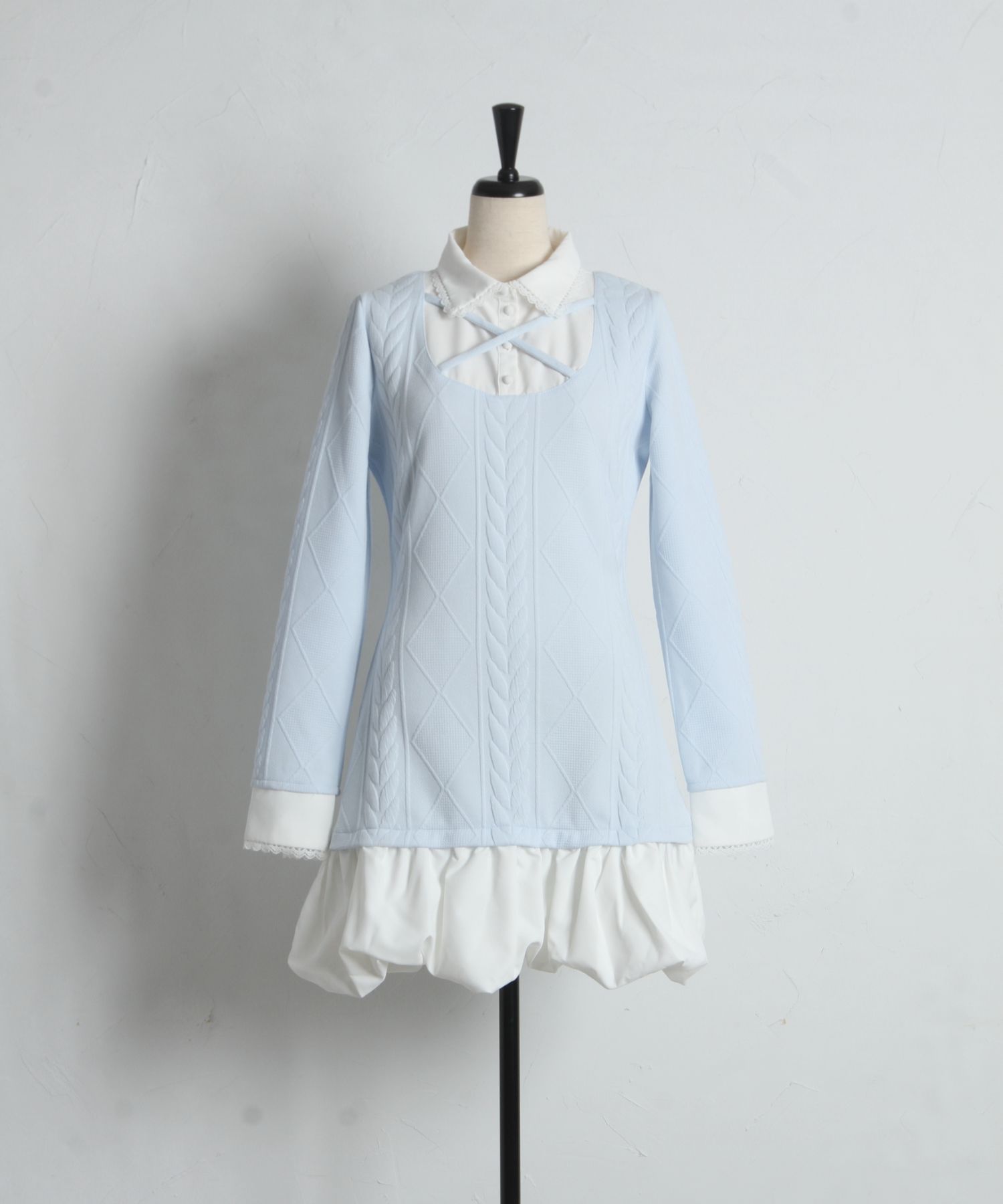 レース装飾シャツドッキングバルーンワンピース