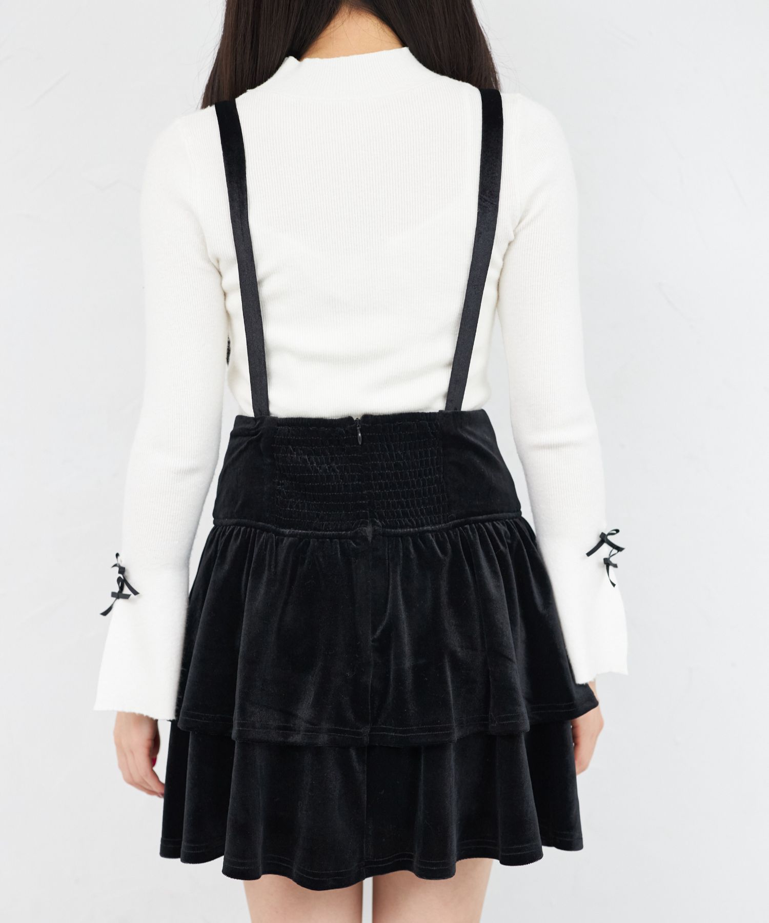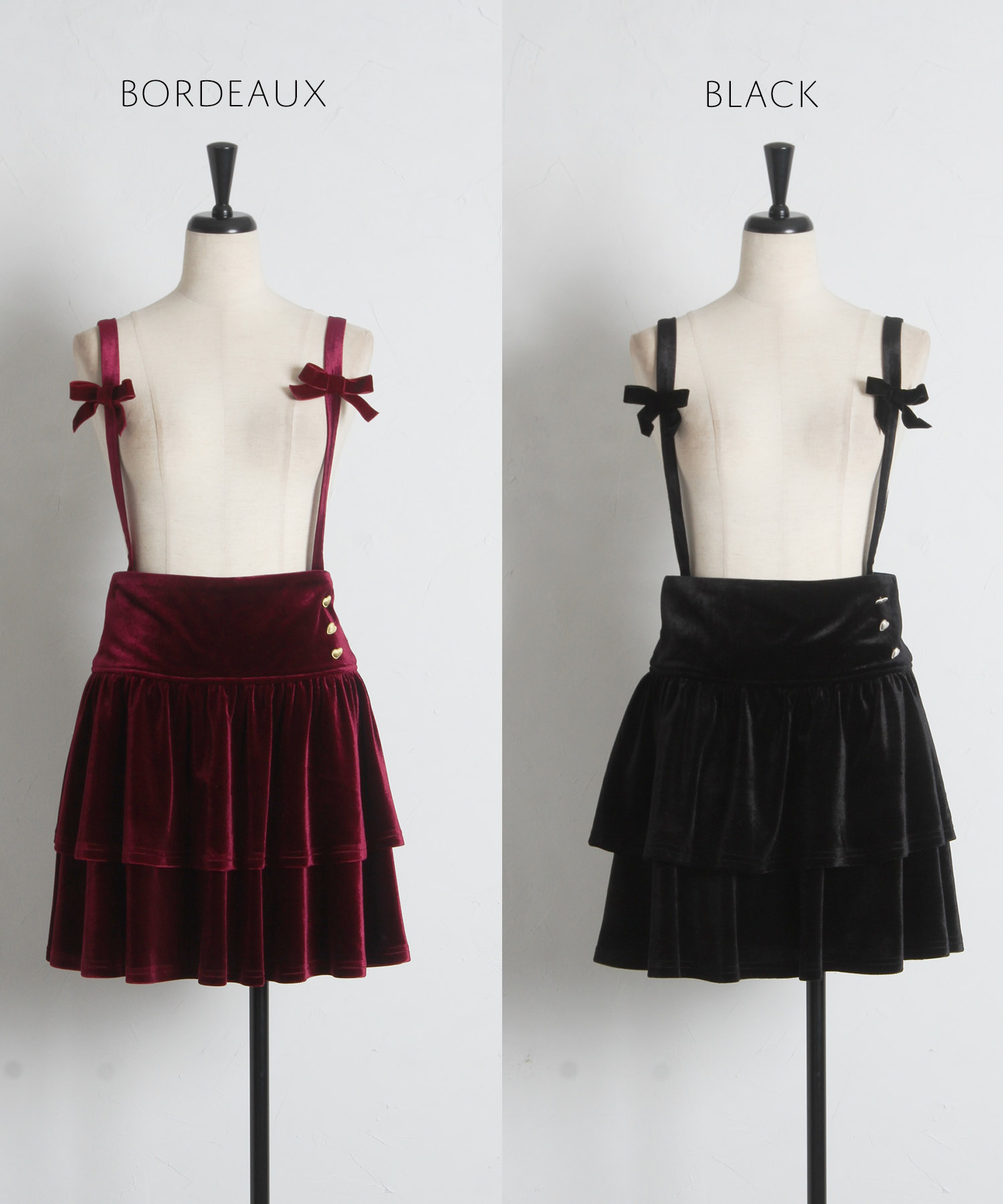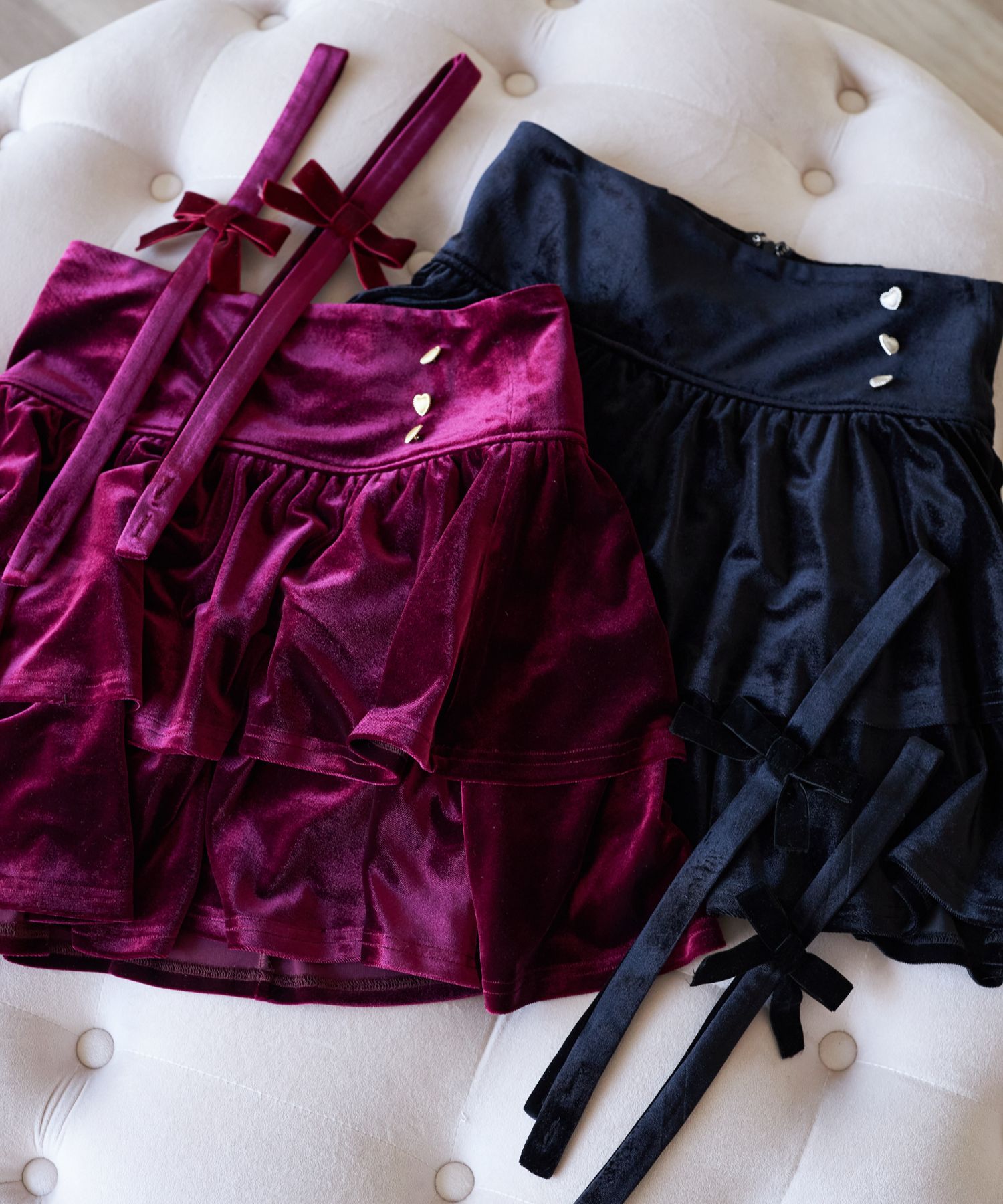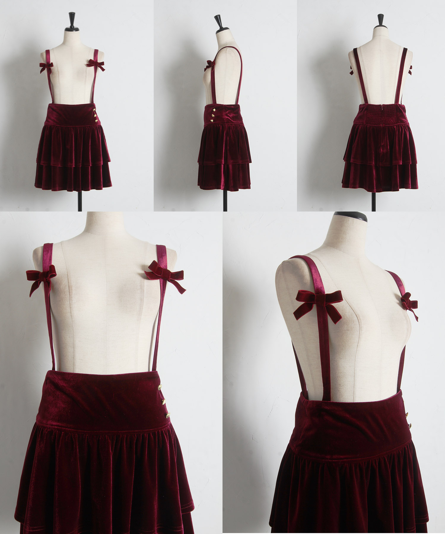 2WAYリボンサスペンダー付きインナーパンツ仕様ベロアティアードスカート
