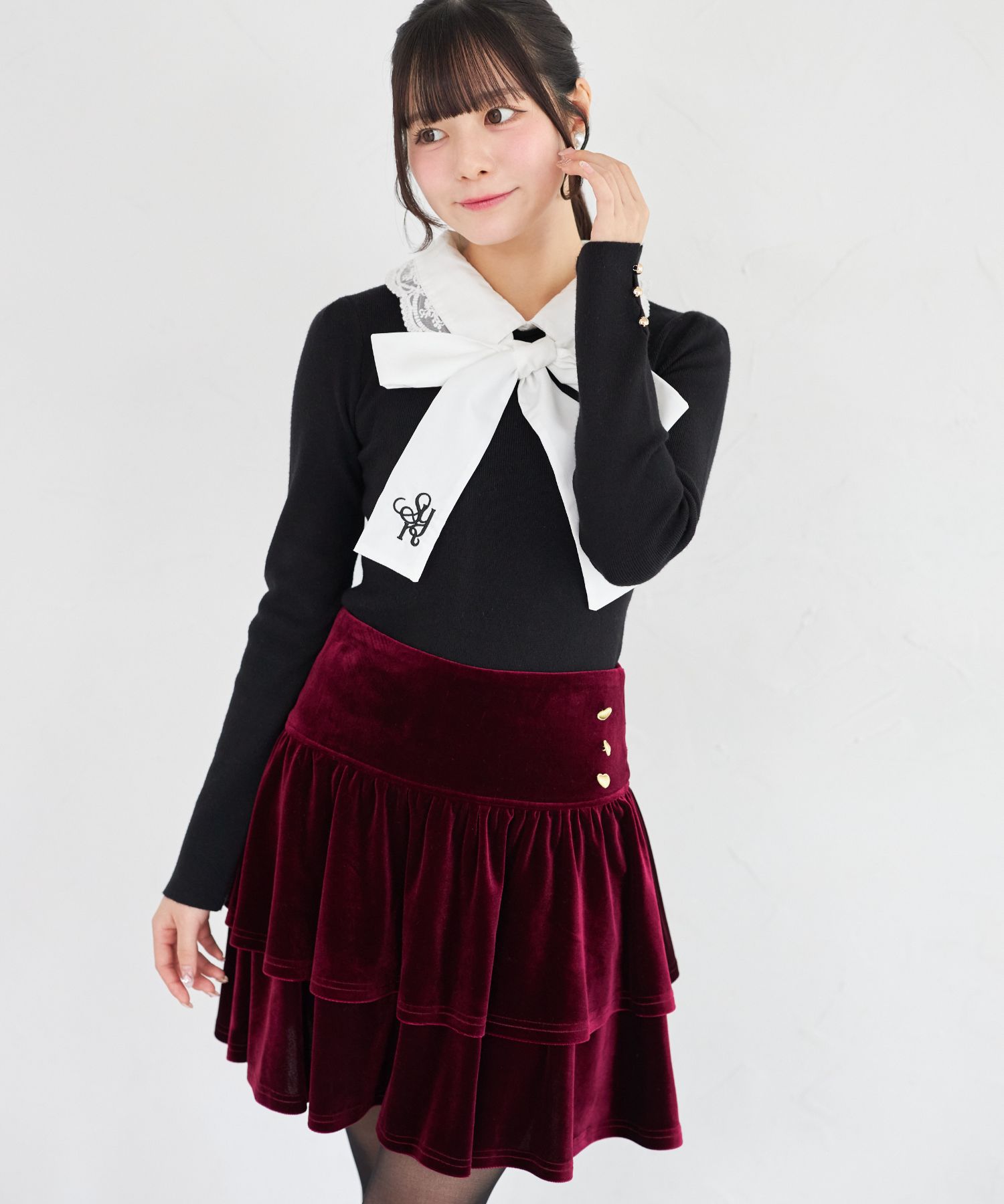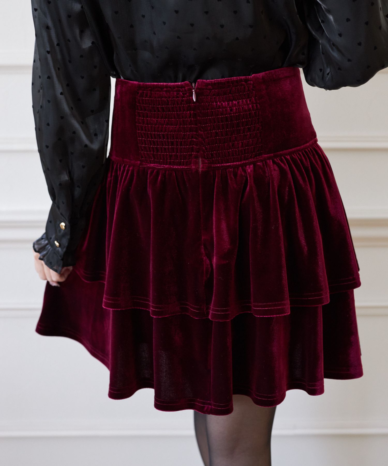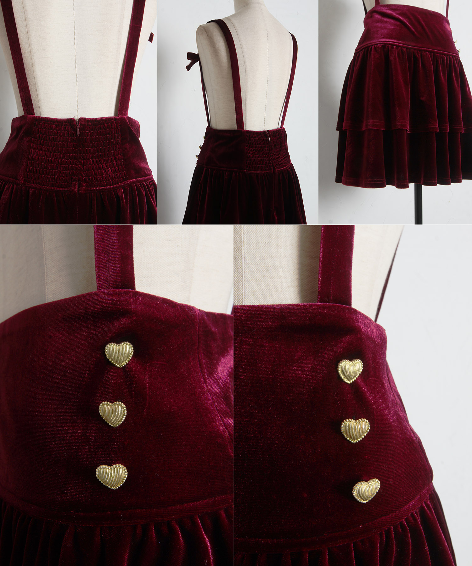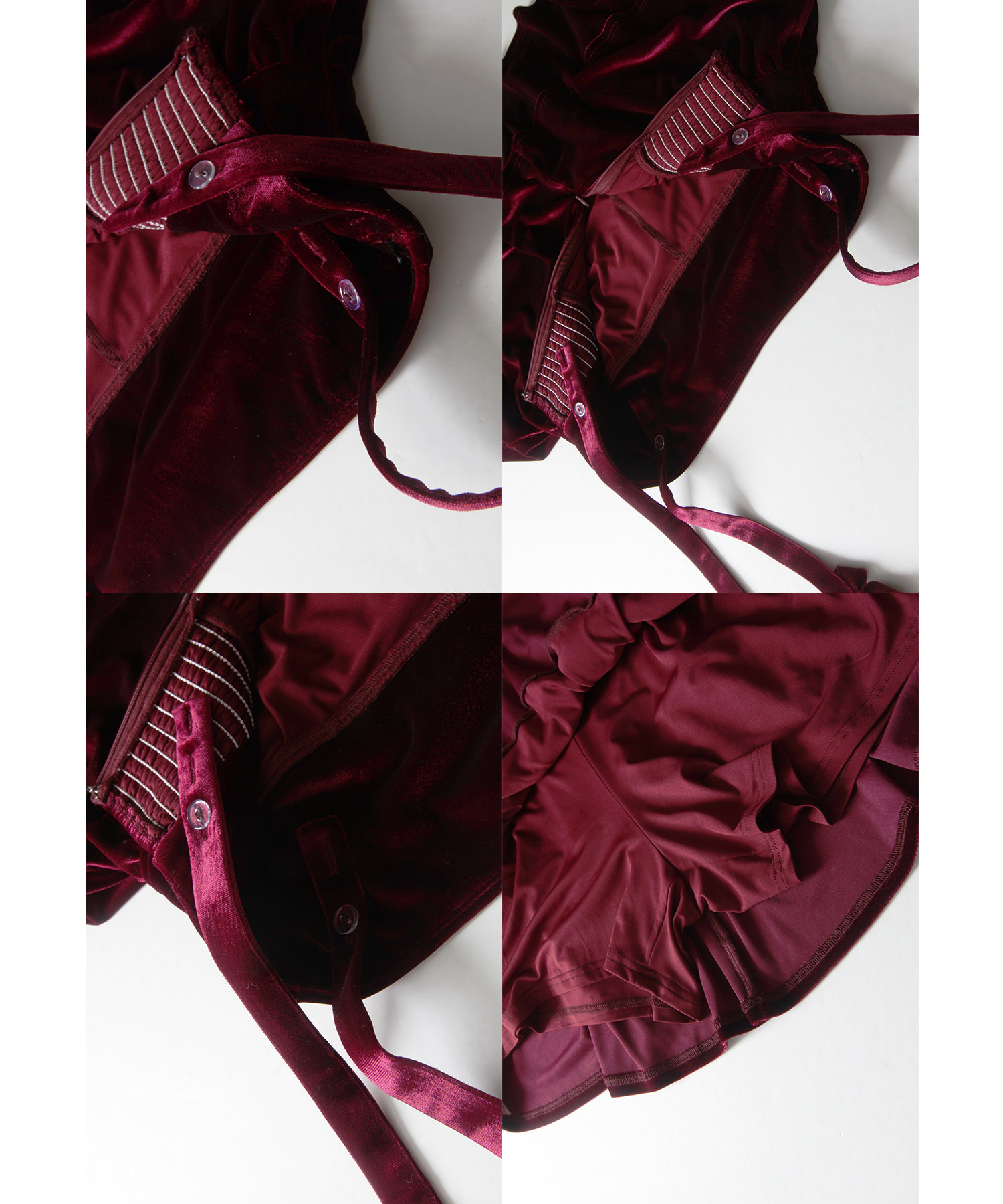 2WAYリボンサスペンダー付きインナーパンツ仕様ベロアティアードスカート